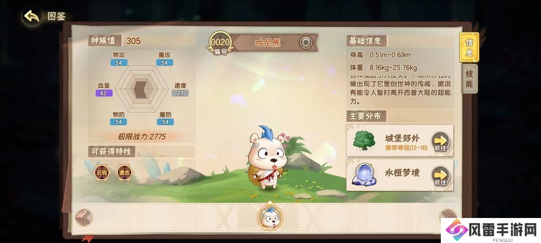别看它小小只的就低估了人家,哈尼熊的特性遗志,可以在倒下后,将自身的属性强化全部附加给下一位上场的精灵,极强的辅助属性让哈尼熊成为挑战BOSS时的不二选择。