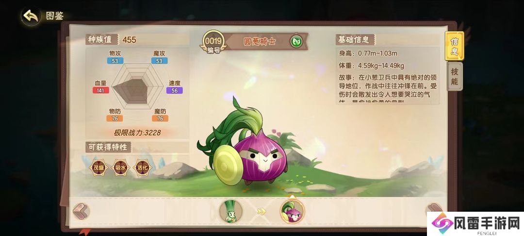 随处可见的小韭葱,却是个不折不扣的恢复系能手,进化后的圆葱骑士更是具有高强度的恢复能力。