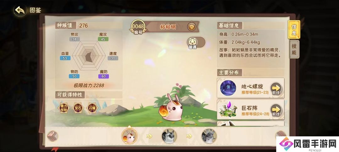 精灵速度慢总是被对方先手打败?让粘粘蜗来帮你~特性重力放射,重力场内速度慢的精灵才能先手攻击,战斗不再慢人一步,助力小西普们的最后一击!