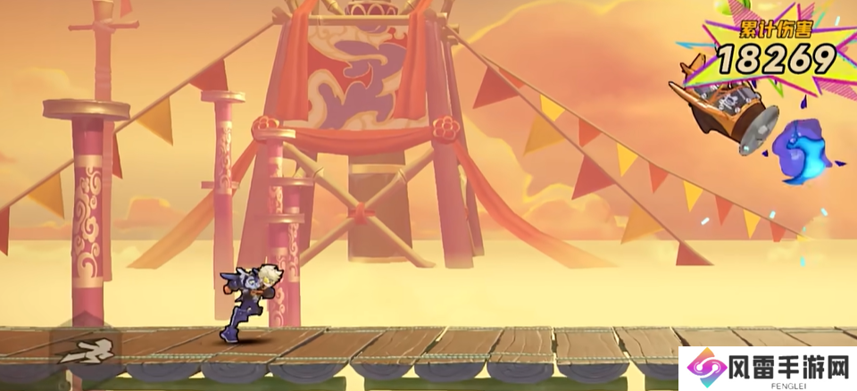 接着就是水墨画卷,这张地图是以围绕水墨风格主题设计的地图,这款地图的背景比较吸引人,以各种建筑物为承托,整体色调为黄色,给人一种游览水墨之乡的感觉,这张地图的挑战难度也是较低,基本上平路为主,地图上也少有怪物。