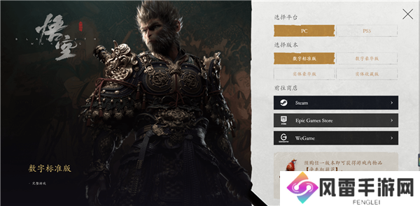 官网为游戏厂商【游戏科学】提供,在官网可以看到所有支持的平台以及版本,PC与PS5双平台,PC版有数字标准版,数字豪华版,实体豪华版和实体收藏版。PS5也出售数字标准版与数字和豪华版。