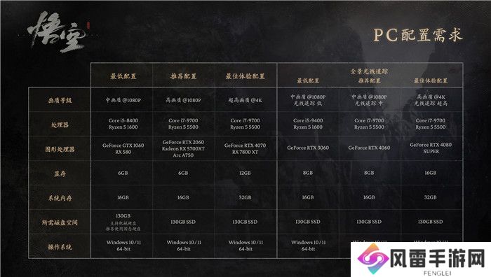 黑神话悟空PC版配置说明