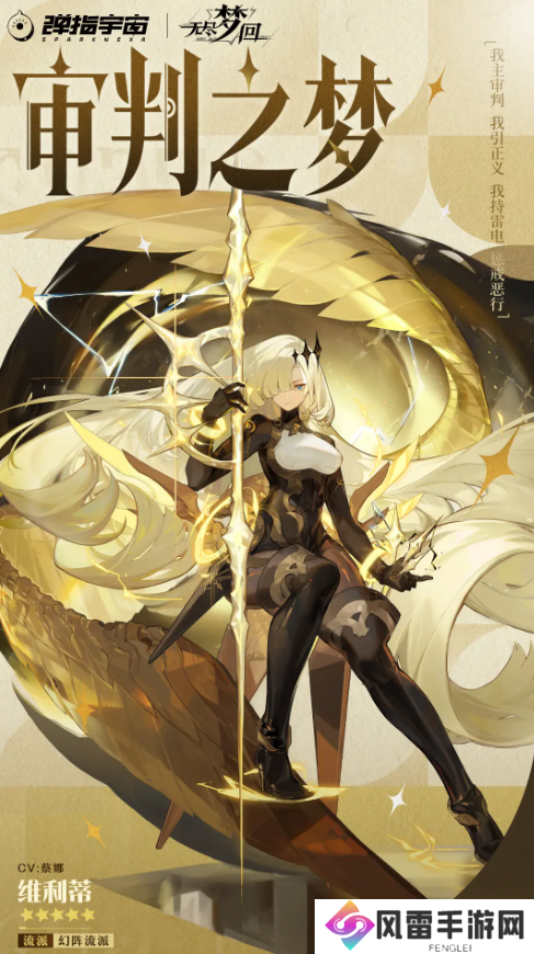 审判之梦名字叫维利蒂是五星级梦灵,她的普攻会向前方发起三次攻击,前面两段攻击每次都会投掷一发疾电,最后一段会直接投掷三发并且附加一个雷罚造成额外伤害,她的生存技在释放的时候,会先向前方闪现一段距离,在闪现的期间会免疫所有的伤害,到了闪现的终点处会召唤一道雷罚造成伤害,她的特性技在使用后会先进行短暂蓄力,然后向四周释放出六个裁决场,这个裁决场会自行移动,然后对沿途范围内的敌人造成不小的法阵伤害。