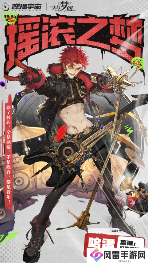 摇滚之梦的名字叫做哈雷,他是五星级梦灵,喜欢自由,会打破一切保守,哈雷的普攻会发出音浪来攻击敌人,他的生存技会向前滑跪出场,然后冲刺一段距离,他的特性技会发出大范围音波,持续聚集敌人,并进入混响模式,大幅强化普攻伤害。