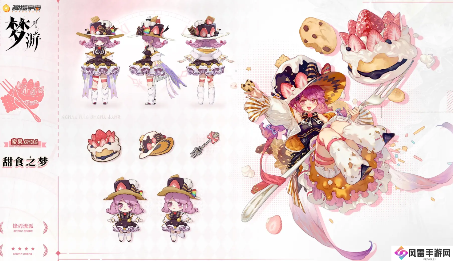 甜食之梦的名字叫蜜果是四星级梦灵,她的普攻会挥动武器进行三段式攻击,最后一段附加“甜蜜冲击”,“甜蜜冲击”会造成圆形范围伤害,有概率附带眩晕状态,她的生存技会向前方突进,下次普攻会变成砸地的重击,并附带一次“甜蜜冲击”,她的特性技长按会挥动武器并旋转,旋转过程会消耗能量值,持续性的对周围敌人造成伤害,直到能量不足的时候,此次攻击才会停下。