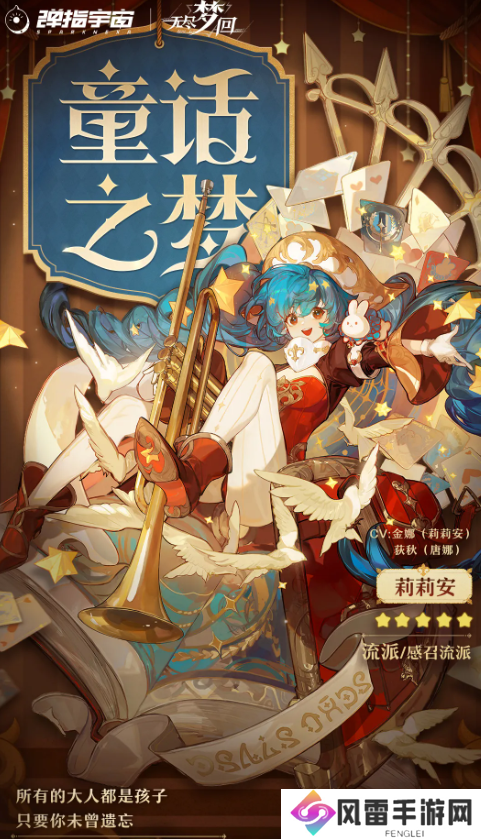 童话之梦的名字叫做莉莉安,她也是五星级梦灵,她拥有孩童般的好奇心,不管是多么不切实际的美好心愿,都会帮助我们在美梦中实现,莉莉安还有一只兔子骑士“唐娜”,它会在在进入关卡的时候自动被召唤出来,此后都会在场上帮忙攻击敌人,唐娜会通过星光来获取能量,然后根据当前的能量档位释放出不同强度的攻击,第一档是挥击,会三段挥砸巨锤来攻击敌人,第二档是追击会向玩家锁定的敌人位移,并下砸巨锤,三档的时候会起跳并蓄力后砸下巨锤,造成多段伤害;